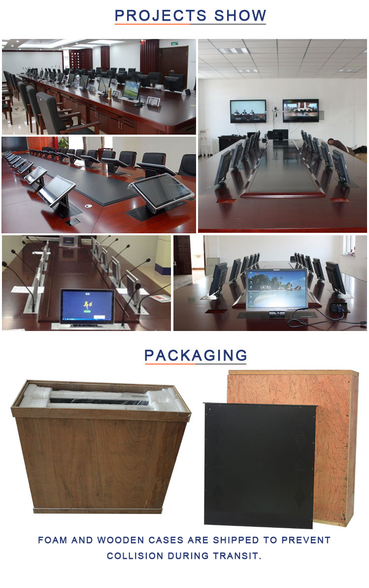 keyword: Conference System, LCD-monitor-lift-with-mic,LCD-monitor-lift-with-microphone,monitor lift, motorized screen,retractable-pop-up-screen, screen lift,Motorized MIC,conference system, motorized monitor and microphone lift