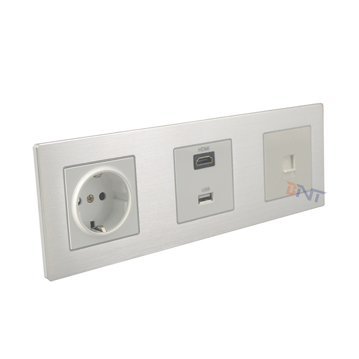 Media Wall Socket Plate made of high quality aluminum drawing panel, black, silver and gold color for selection.