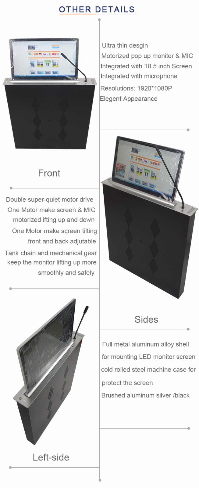 3. 电动升降器采用18.5 LED屏幕+电动麦克风同时升降设计