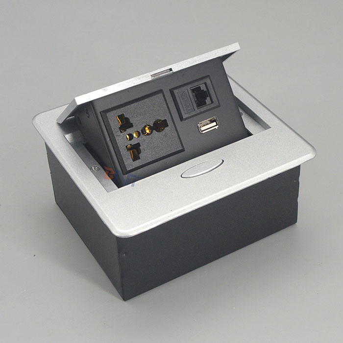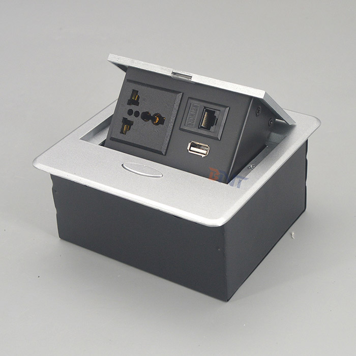 锌合金材料的桌面弹起插座盒带有万能电源接口 BD300-10