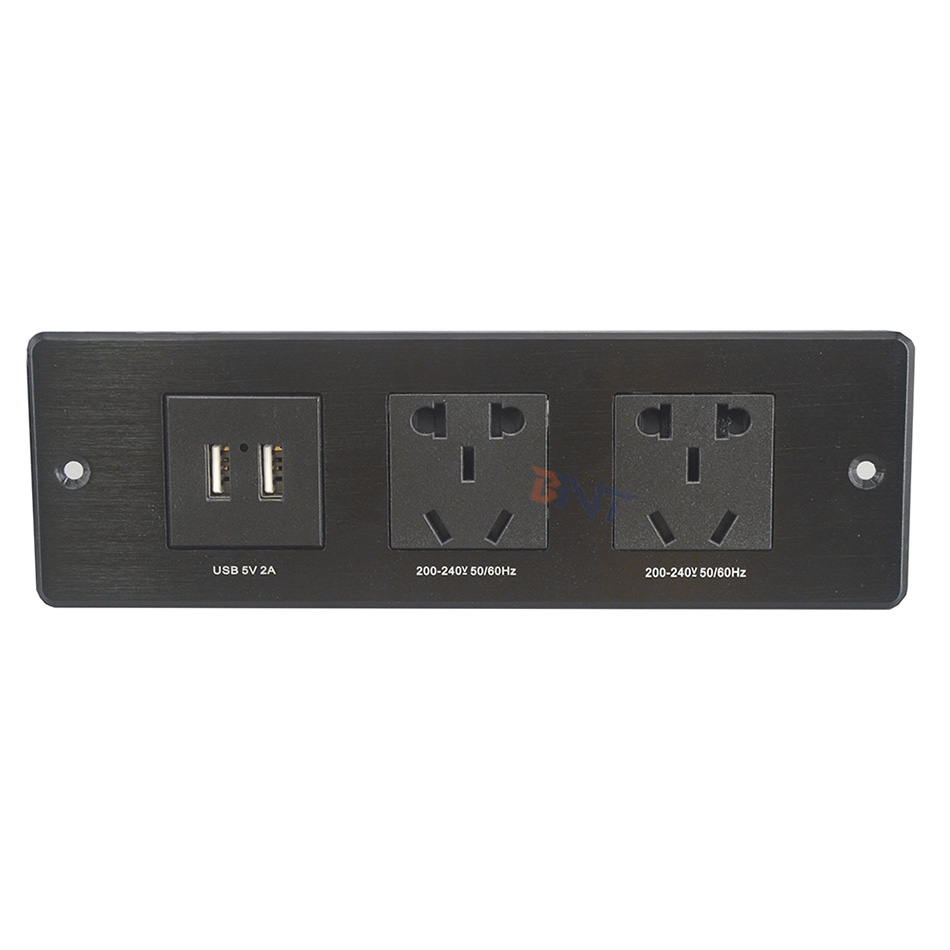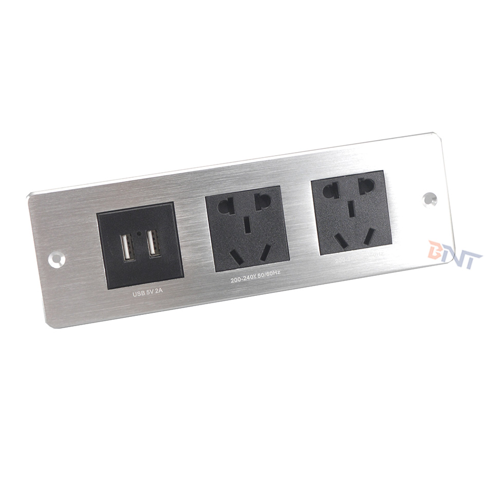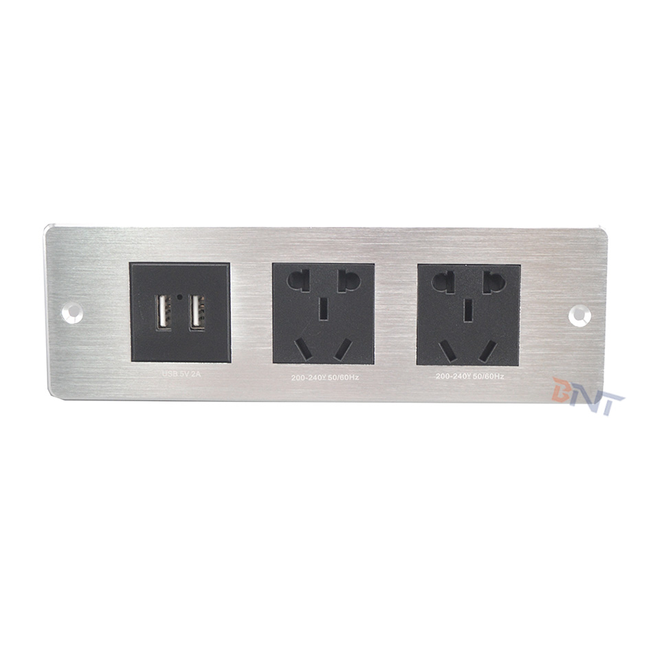 铝合金墙壁插座板广泛用于办公和酒店家具,高级办公室,豪华会议桌,酒店和多媒体教室和培训室。