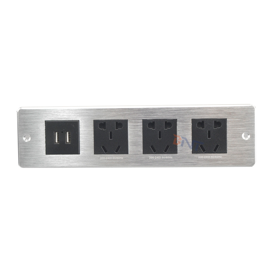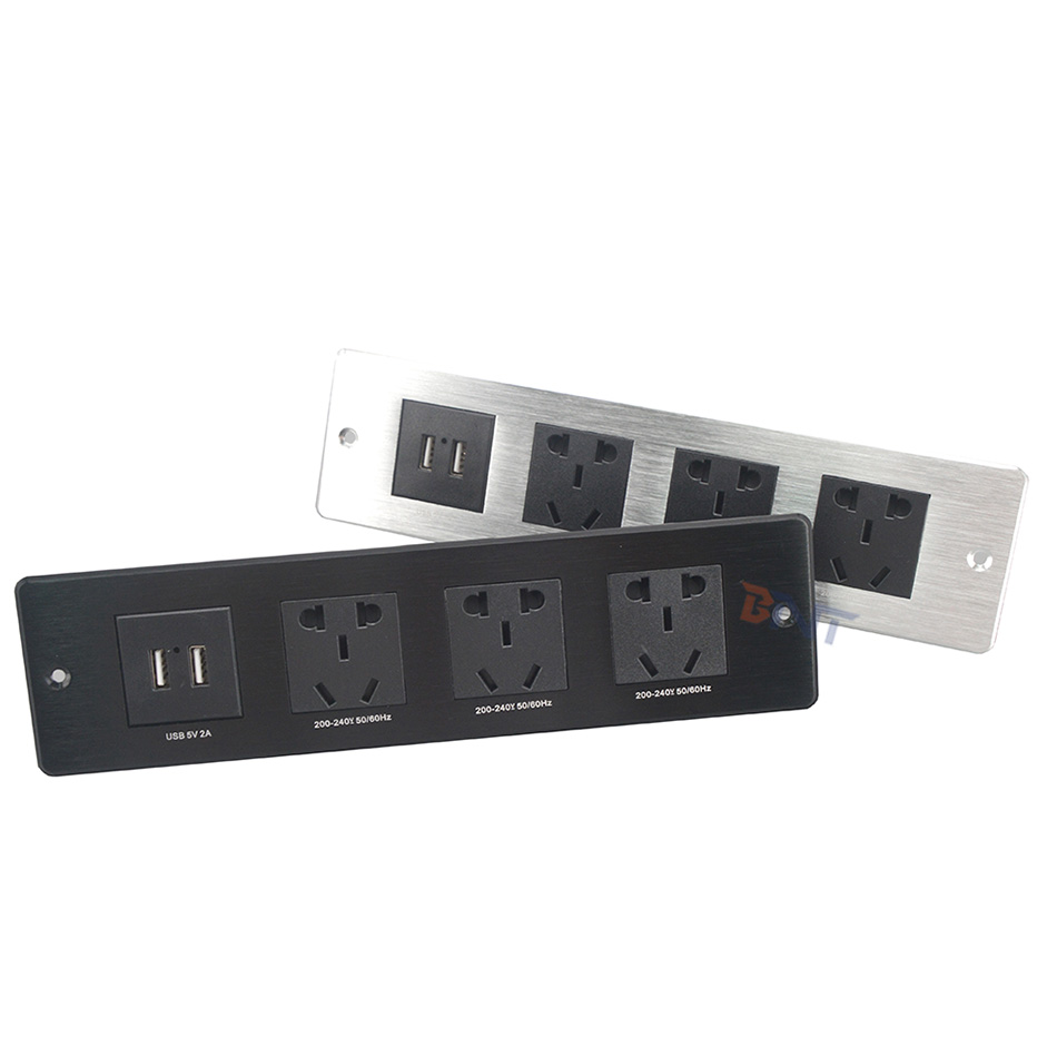 铝合金墙壁插座板广泛用于办公和酒店家具,高级办公室,豪华会议桌,酒店和多媒体教室和培训室。
