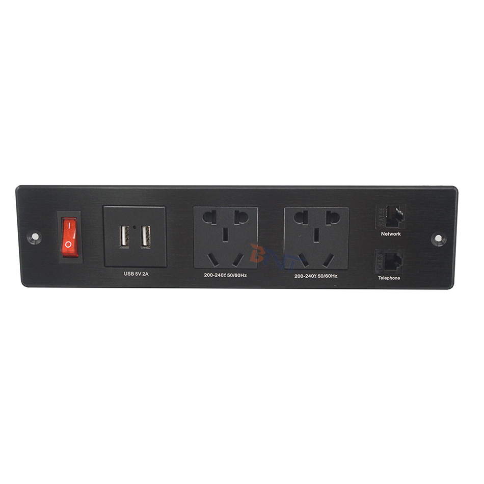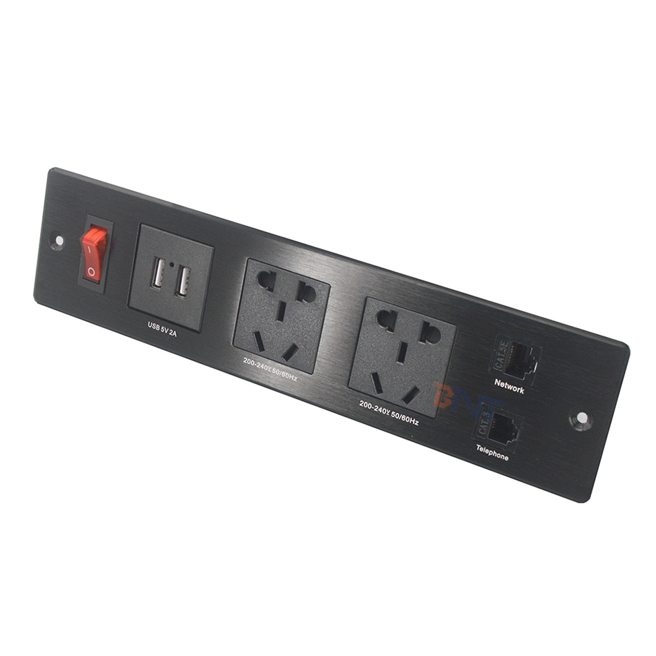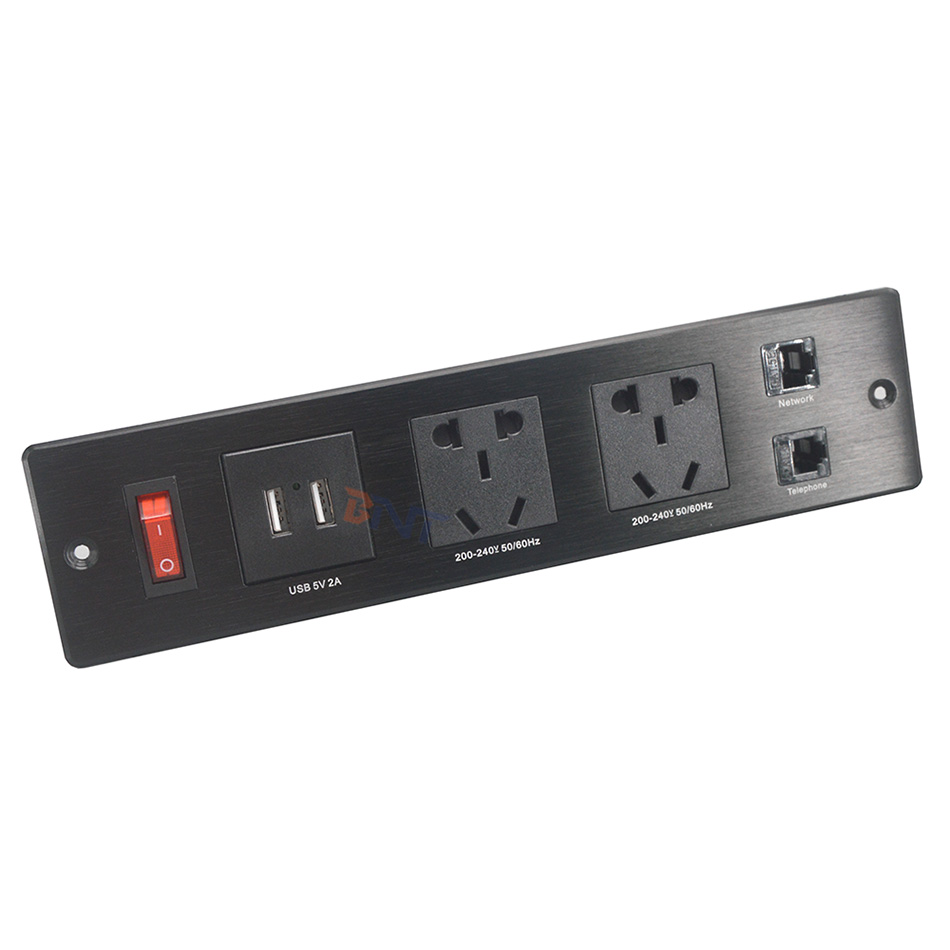 铝合金墙壁插座板广泛用于办公和酒店家具,高级办公室,豪华会议桌,酒店和多媒体教室和培训室。