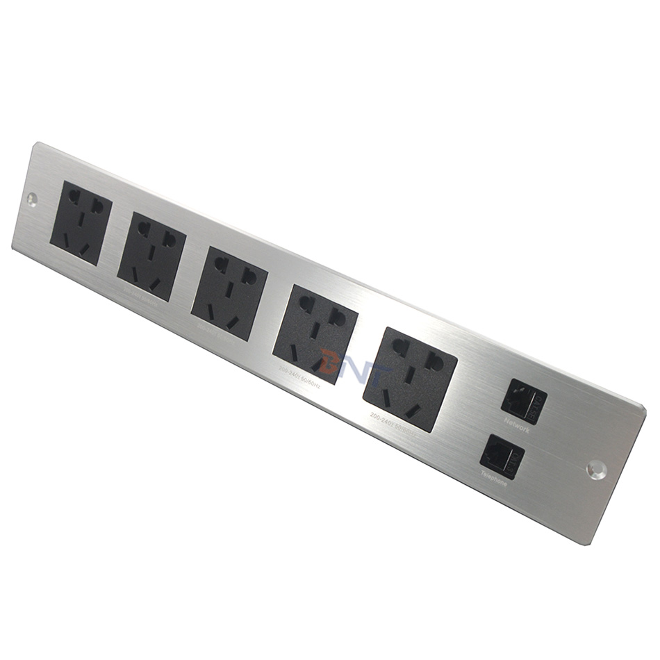 铝合金墙壁插座板广泛用于办公和酒店家具,高级办公室,豪华会议桌,酒店和多媒体教室和培训室。