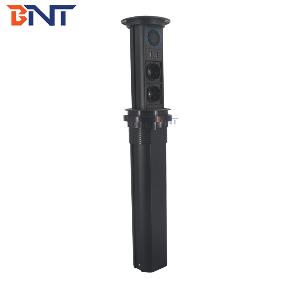 触碰顶部按钮,插座就会从桌子的底部自动竖向升起。该款插座与其他电子设备连接非常简单并方便。