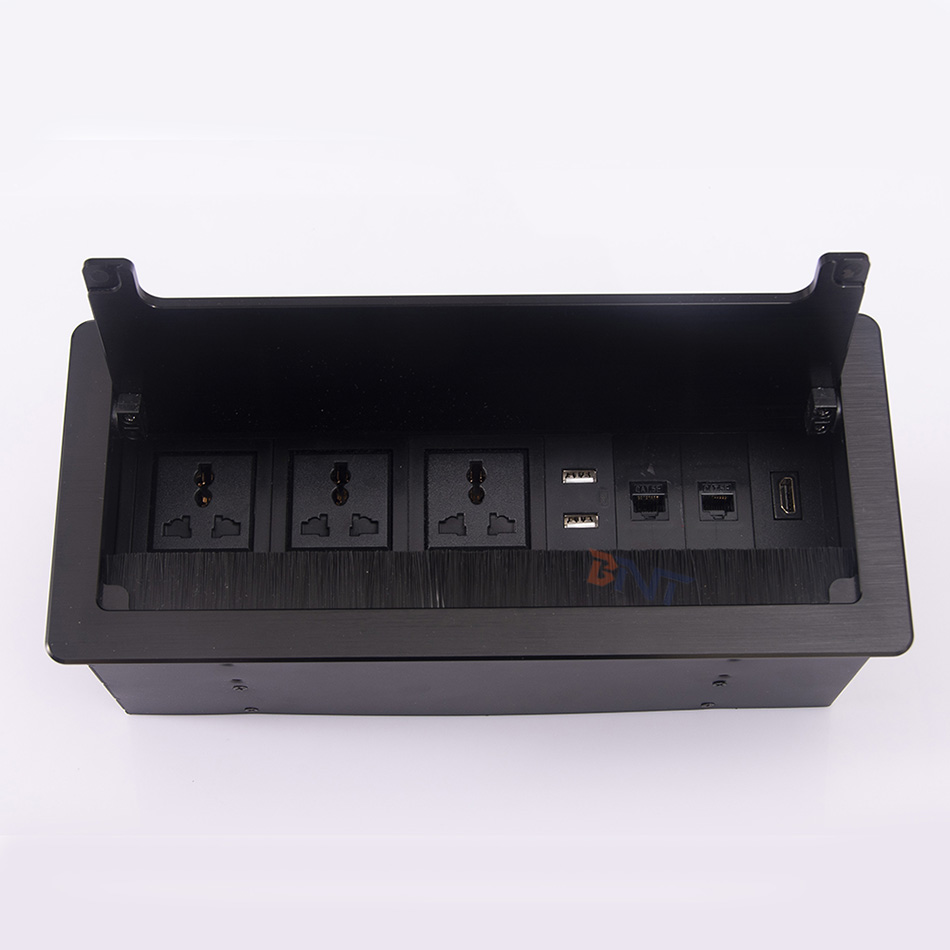 毛刷翻盖插座广泛用于家具,如会议室,办公桌,培训室,酒店房间等场所应用。