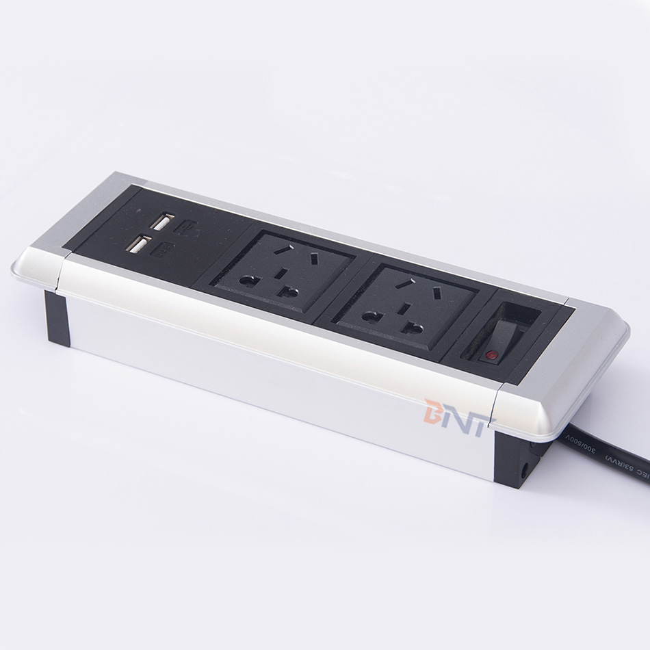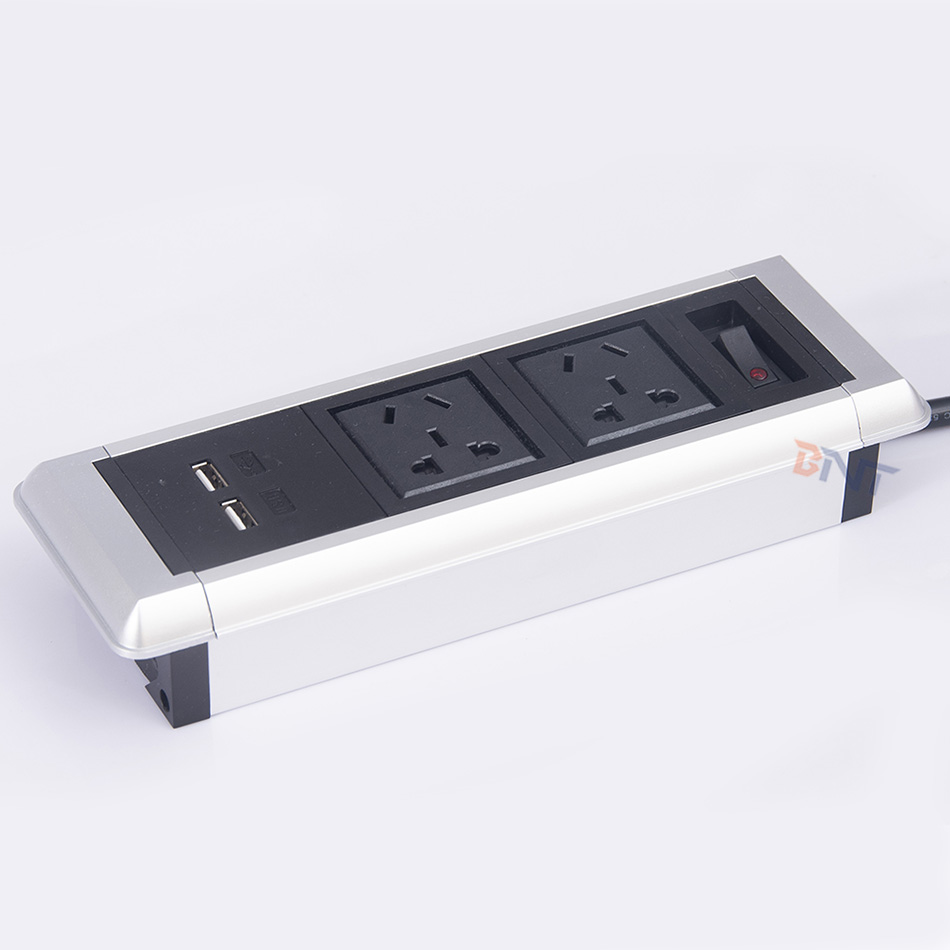 台式插座是一种悬挂式电源插座,采用铝合金材料设计,不易生锈,经久耐用。可提供通用电源插座,可适应各种电源插头或其他标准电源插座。