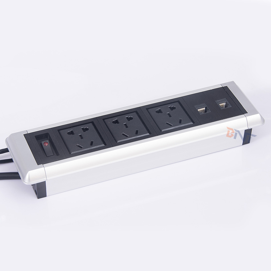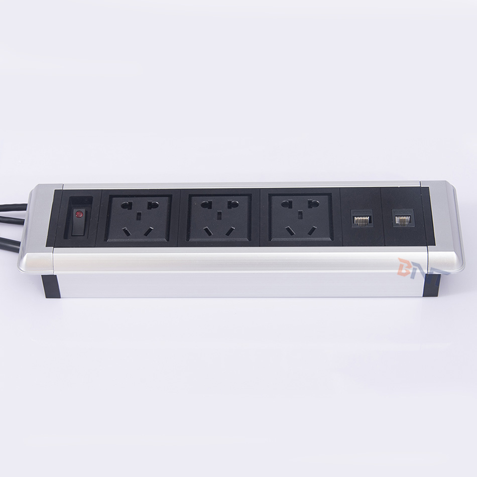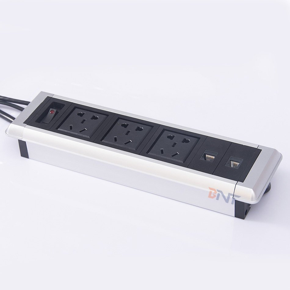 台式插座是一种悬挂式电源插座,采用铝合金材料设计,不易生锈,经久耐用。可提供通用电源插座,可适应各种电源插头或其他标准电源插座。