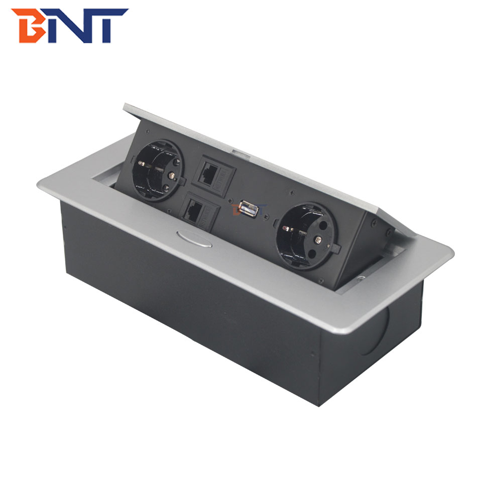 这个插座通常安装在工作台和所有连接器上并隐藏在表面锌合金面板下面。 可以节省更多空间并保持表格整合和符合要求。 为办公室和会议室提供时尚和现代化的环境。