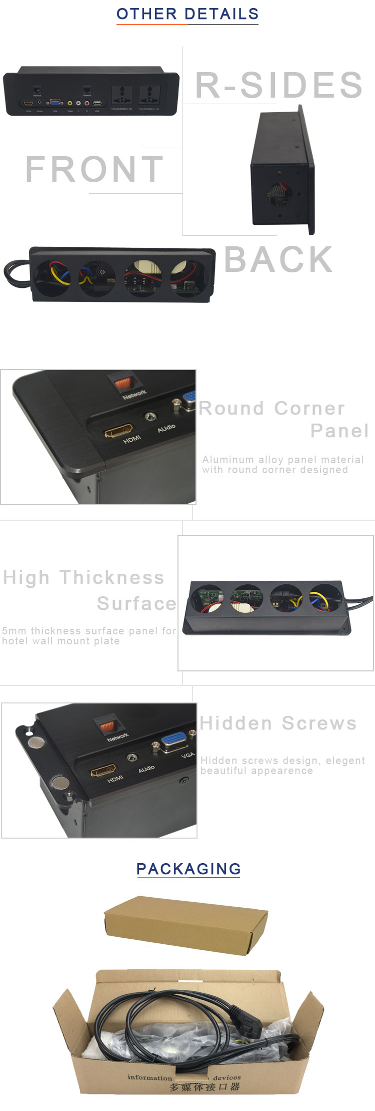 铝合金墙壁插座板广泛用于办公和酒店家具,高级办公室,豪华会议桌,酒店和多媒体教室和培训室。