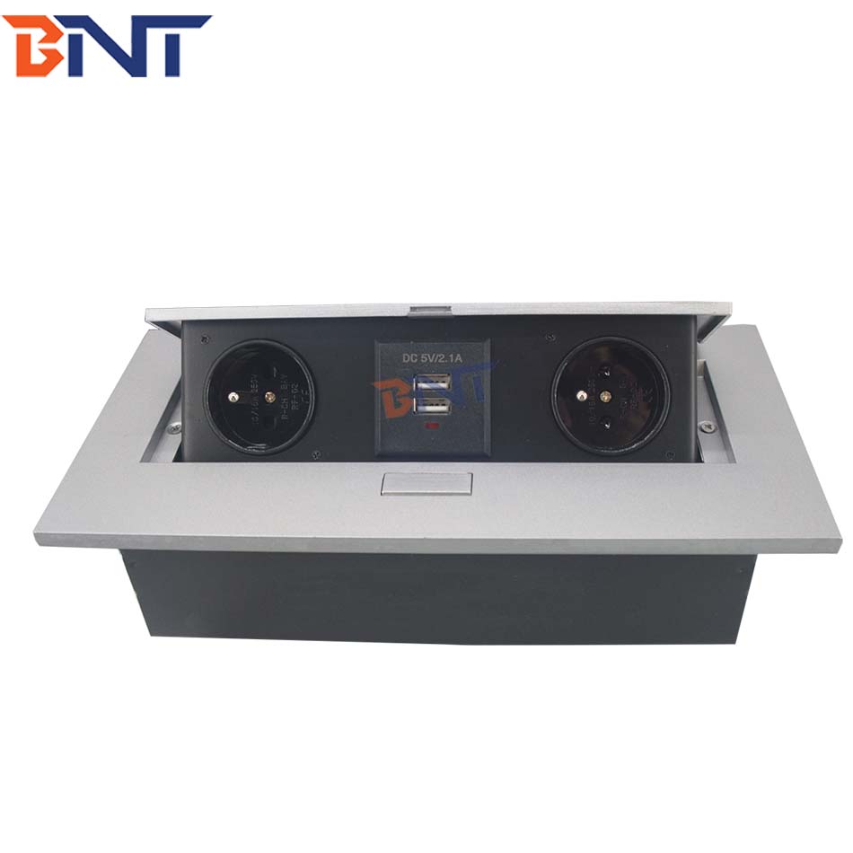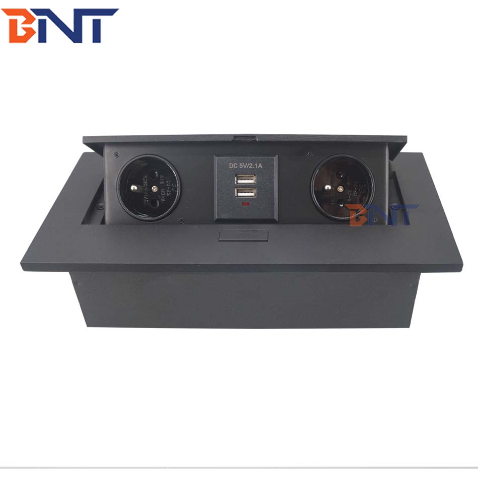 这个插座通常安装在工作台和所有连接器上并隐藏在表面锌合金面板下面。 可以节省更多空间并保持表格整合和符合要求。 为办公室和会议室提供时尚和现代化的环境。