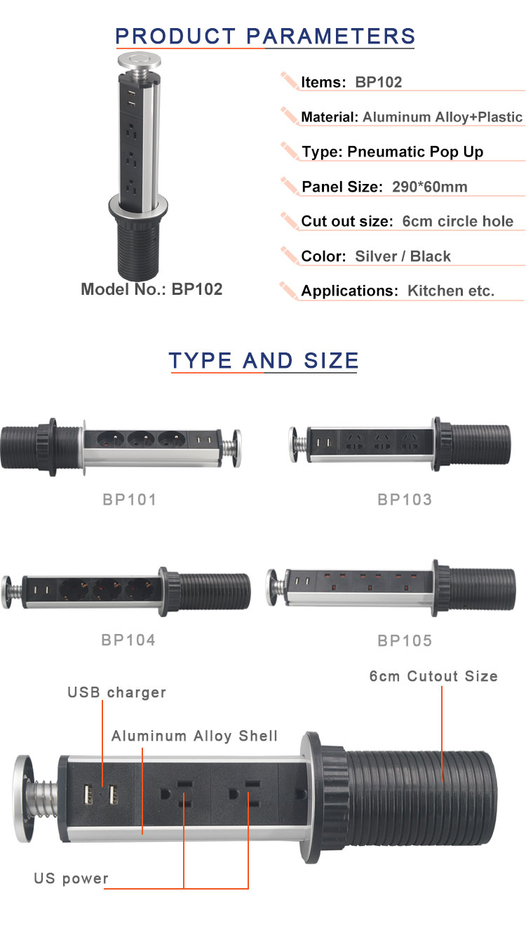 博摁特高新科技有限公司新产品电动厨房拉拔插座BM1501
