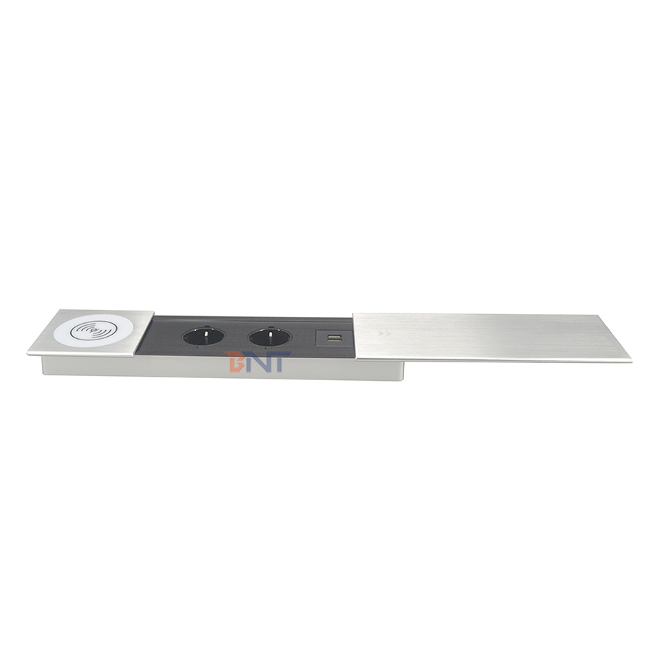 BC-01桌面插座设计为具有多功能配置的现代滑盖插座,它是一种隐藏的设备,因为它安装在桌面上使用并在不使用时隐藏在桌子中。使用无线充电器连接器,用户可以将手机放在充电器上,无需电线直接充电。根据您的选择,它还有USB充电器连接器,可通过USB线为移动设备或其他设备充电。