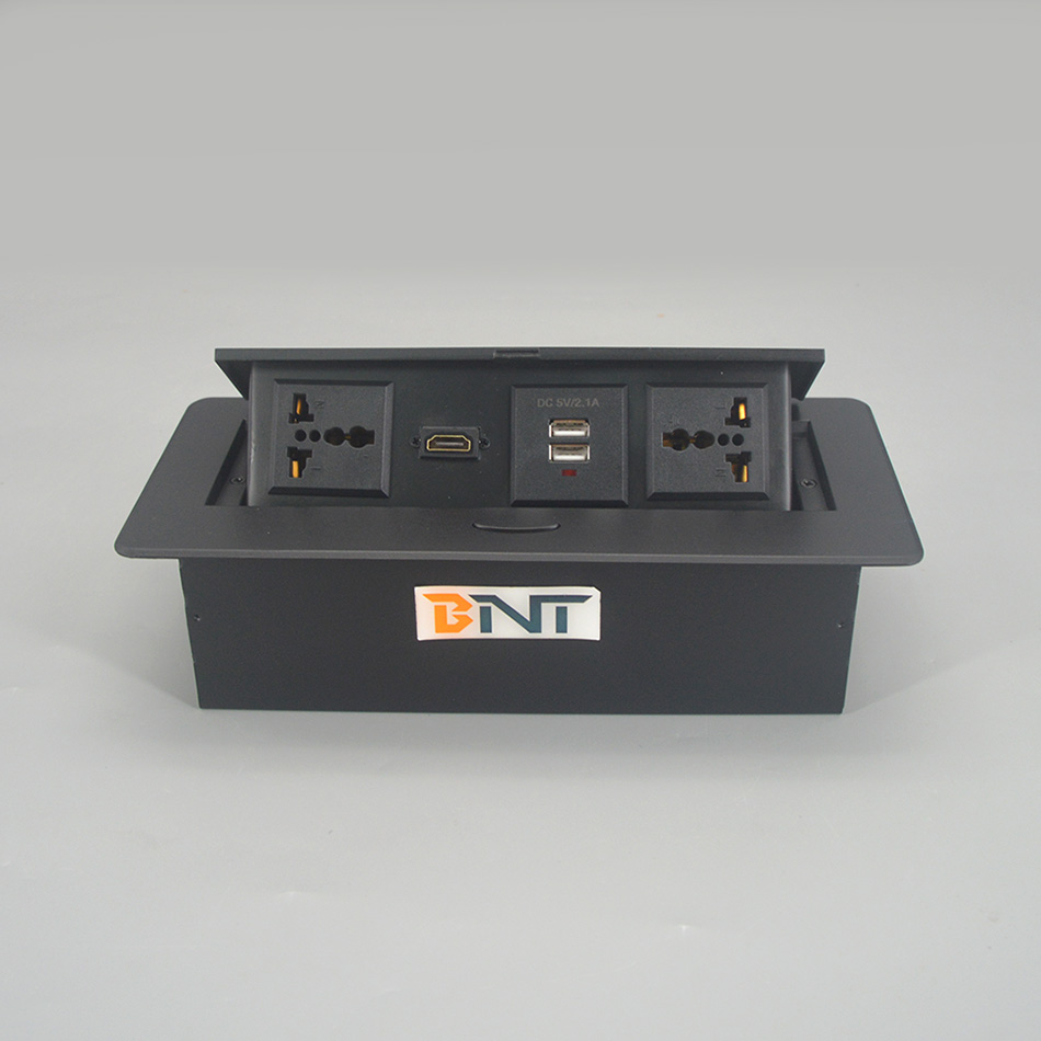 这个插座通常安装在工作台和所有连接器上并隐藏在表面锌合金面板下面。 可以节省更多空间并保持表格整合和符合要求。 为办公室和会议室提供时尚和现代化的环境。