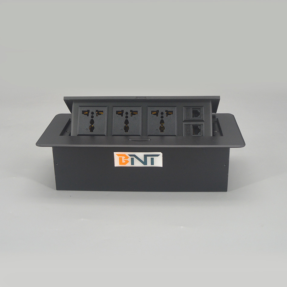 这个插座通常安装在工作台和所有连接器上并隐藏在表面锌合金面板下面。 可以节省更多空间并保持表格整合和符合要求。 为办公室和会议室提供时尚和现代化的环境。
