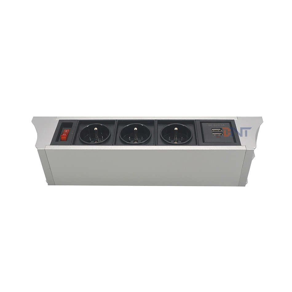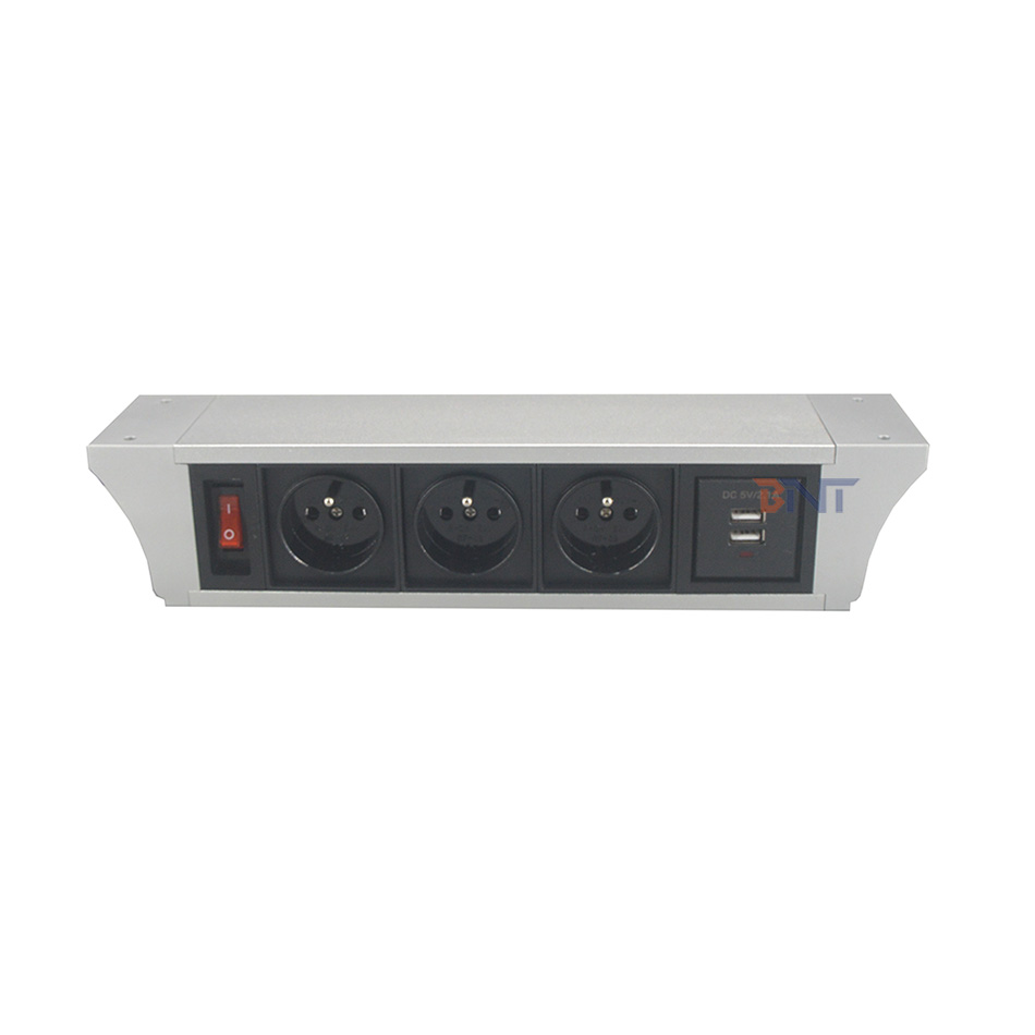 TUS系列台式插座是一种悬挂式电源插座,采用铝合金材料设计,不易生锈,经久耐用。可提供通用电源插座,可适应各种电源插头或其他标准电源插座。