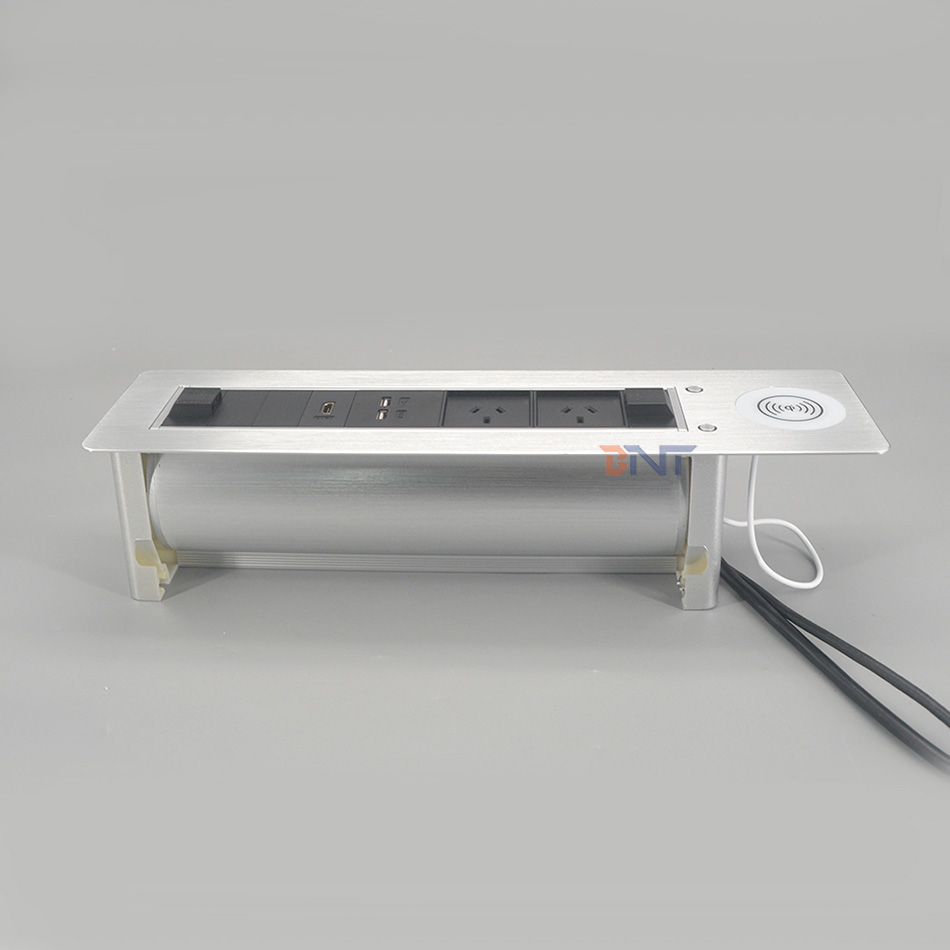 BC-01桌面插座设计为具有多功能配置的现代滑盖插座,它是一种隐藏的设备,因为它安装在桌面上使用并在不使用时隐藏在桌子中。使用无线充电器连接器,用户可以将手机放在充电器上,无需电线直接充电。根据您的选择,它还有USB充电器连接器,可通过USB线为移动设备或其他设备充电。