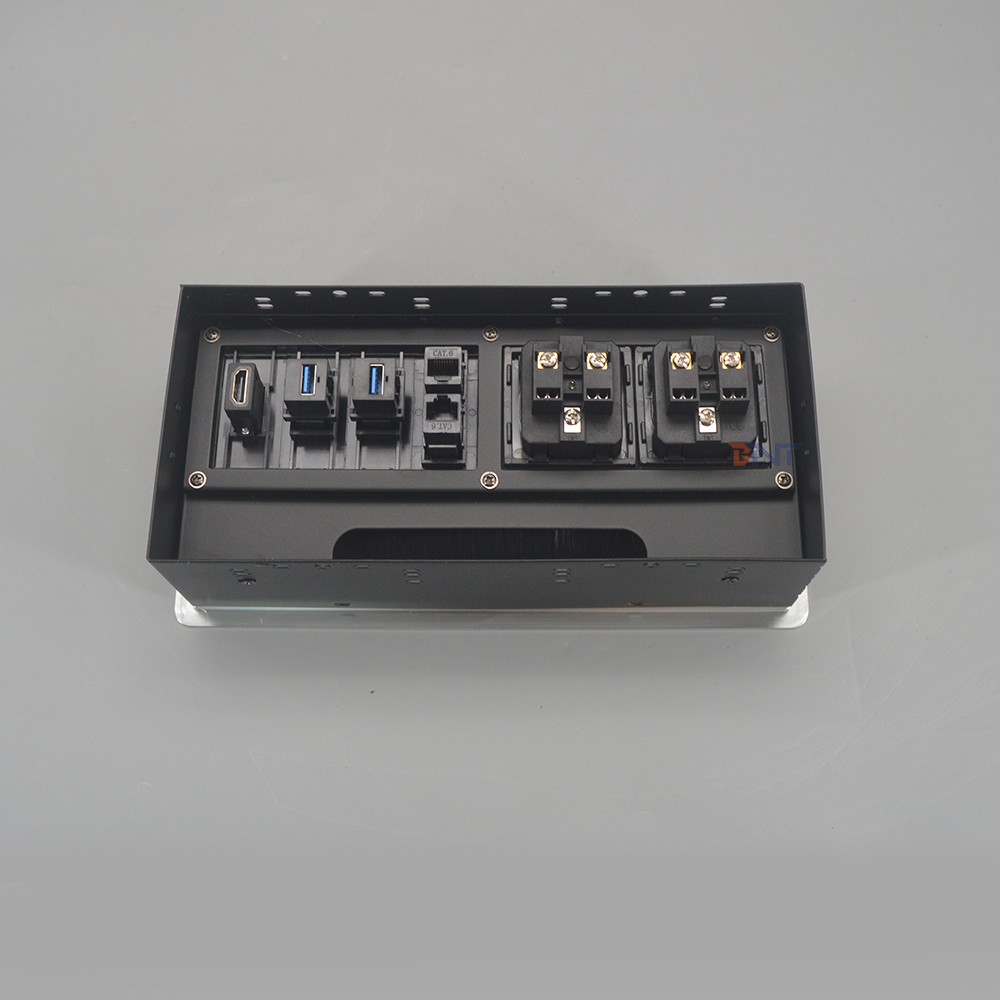 毛刷翻盖插座广泛用于家具,如会议室,办公桌,培训室,酒店房间等场所应用。