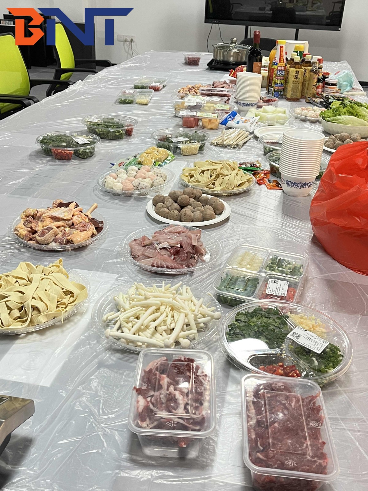 餐桌上摆满了丰盛的美食,香气四溢,员工们边品尝佳肴,边分享着彼此在工作中的点滴故事和心得体会,欢笑声、交谈声交织在一起,其乐融融。