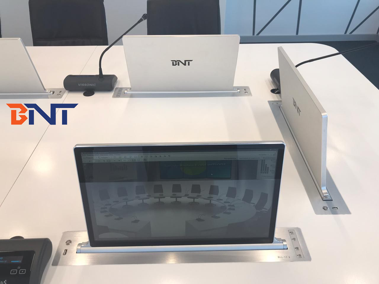 BNT 17.3英寸带屏超薄液晶显示器升降器用于哈萨克斯坦的某军队基地会议室