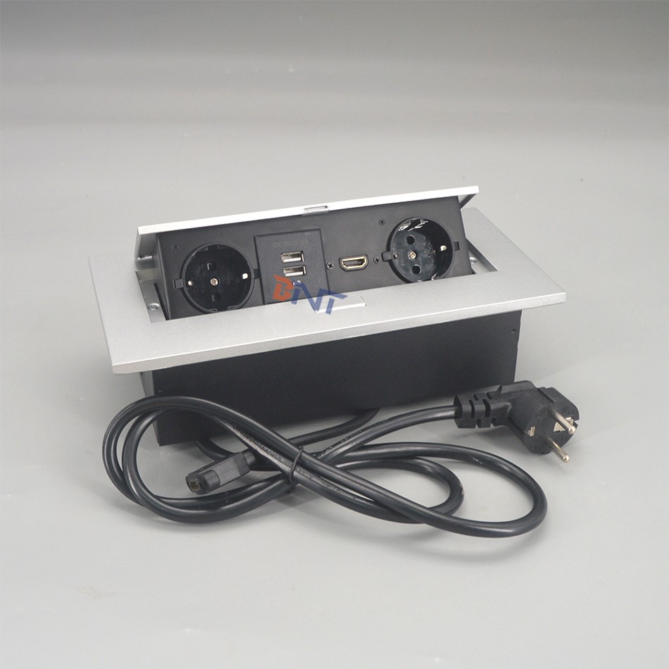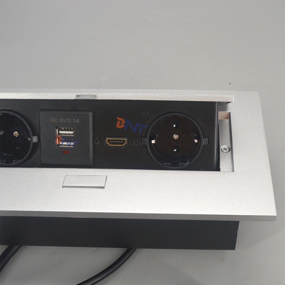 这个插座通常安装在工作台和所有连接器上并隐藏在表面锌合金面板下面。 可以节省更多空间并保持表格整合和符合要求。 为办公室和会议室提供时尚和现代化的环境。
