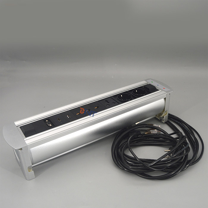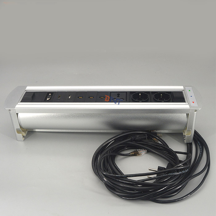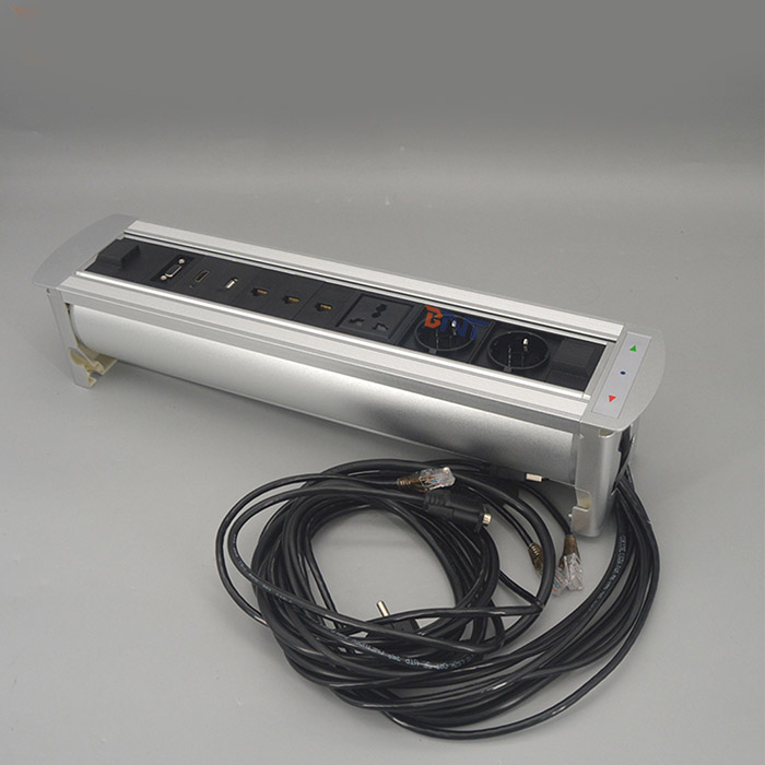 EK系列桌面插座设计为具有多功能配置的现代电动翻盖插座,它是办公家具中音频视频解决方案的隐藏设备。为时尚和现代环境提供服务。对于办公室和会议室,它可以通过触摸开关自动隐藏到桌子中。当使用插座时,只需触摸开关控制器,插座面板就会自动从表中旋转180度,然后将插座暴露在桌面上以备使用。当它不使用时,它会被180度的冷却关闭以与桌面齐平,通过控制关闭开关。它广泛用于高级办公桌,会议室桌面AV解决方案,酒店房间和培训室。
