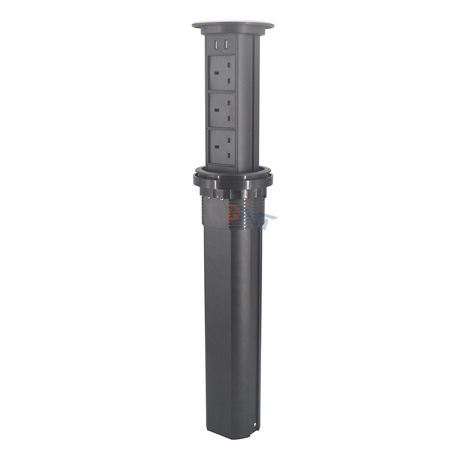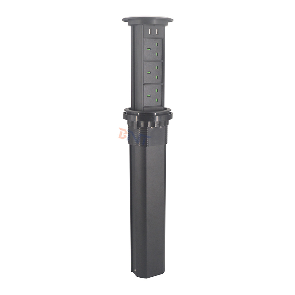 触碰顶部按钮,插座就会从桌子的底部自动竖向升起。该款插座与其他电子设备连接非常简单并方便。