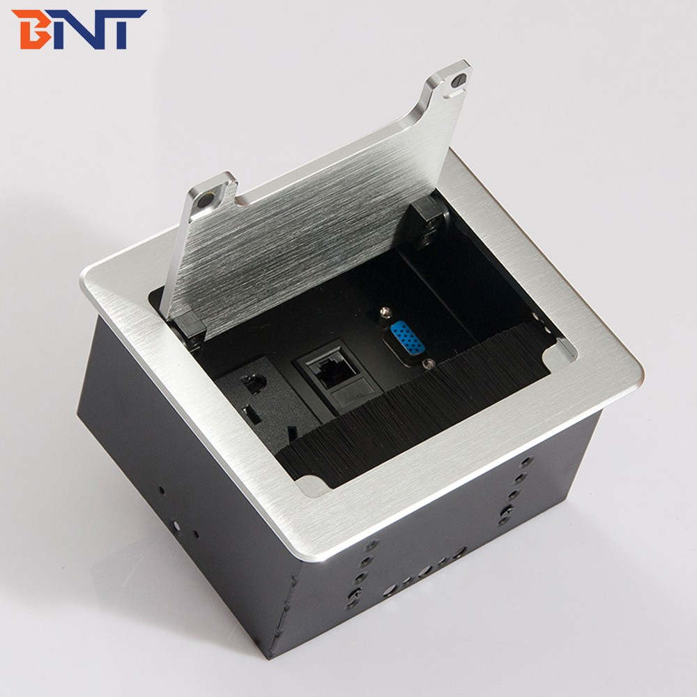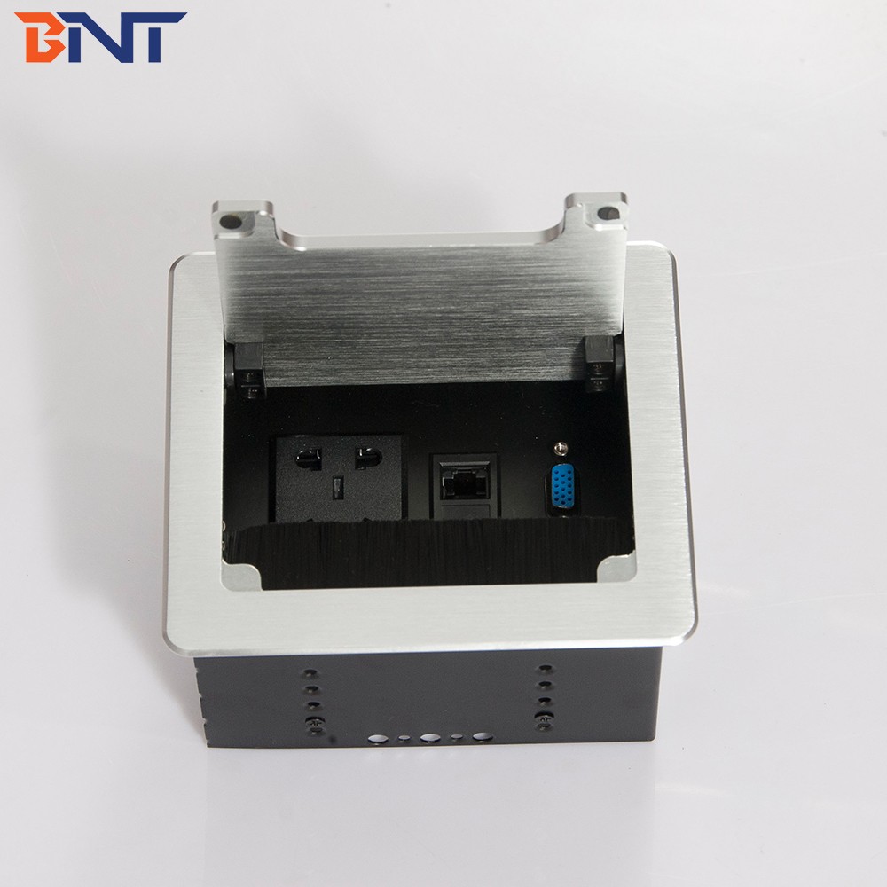 桌面插座的拉丝盖由铝合金精加工制成,可以打开和翻盖关闭。并且所有插座都可以通过刷盖轻松使用而无需打开盖子。