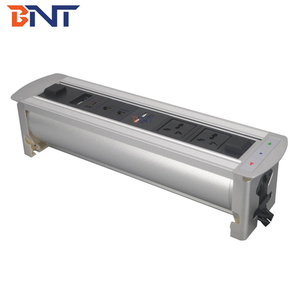 EK系列桌面插座设计为具有多功能配置的现代电动翻盖插座,它是办公家具中音频视频解决方案的隐藏设备。为时尚和现代环境提供服务。对于办公室和会议室,它可以通过触摸开关自动隐藏到桌子中。当使用插座时,只需触摸开关控制器,插座面板就会自动从表中旋转180度,然后将插座暴露在桌面上以备使用。当它不使用时,它会被180度的冷却关闭以与桌面齐平,通过控制关闭开关。它广泛用于高级办公桌,会议室桌面AV解决方案,酒店房间和培训室。