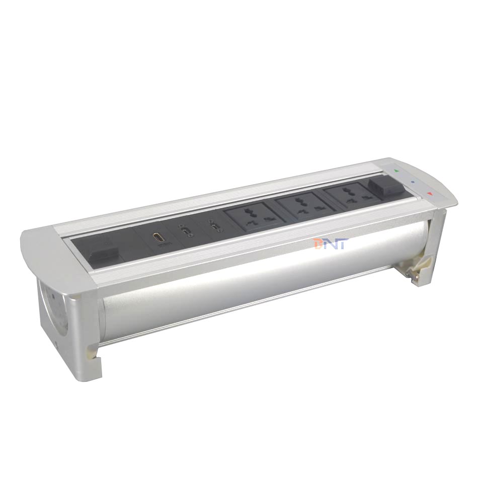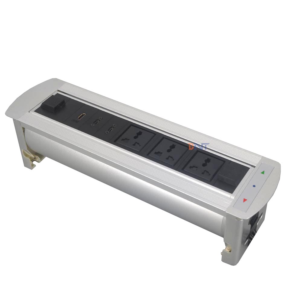 EK系列电动桌面插座是一种创新的解决方案,可在桌面办公家具上提供电气,数据和其他AV接口。 EK系列电动台式插座由电动马达驱动,可在未使用时将插座旋转至隐藏位置。如果在工作期间电动桌面插座顶部有障碍物,电动桌面插座内的光电眼将防止旋转。