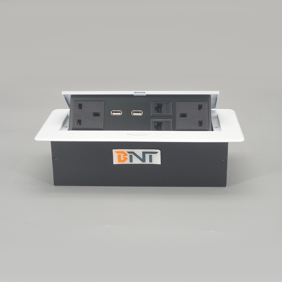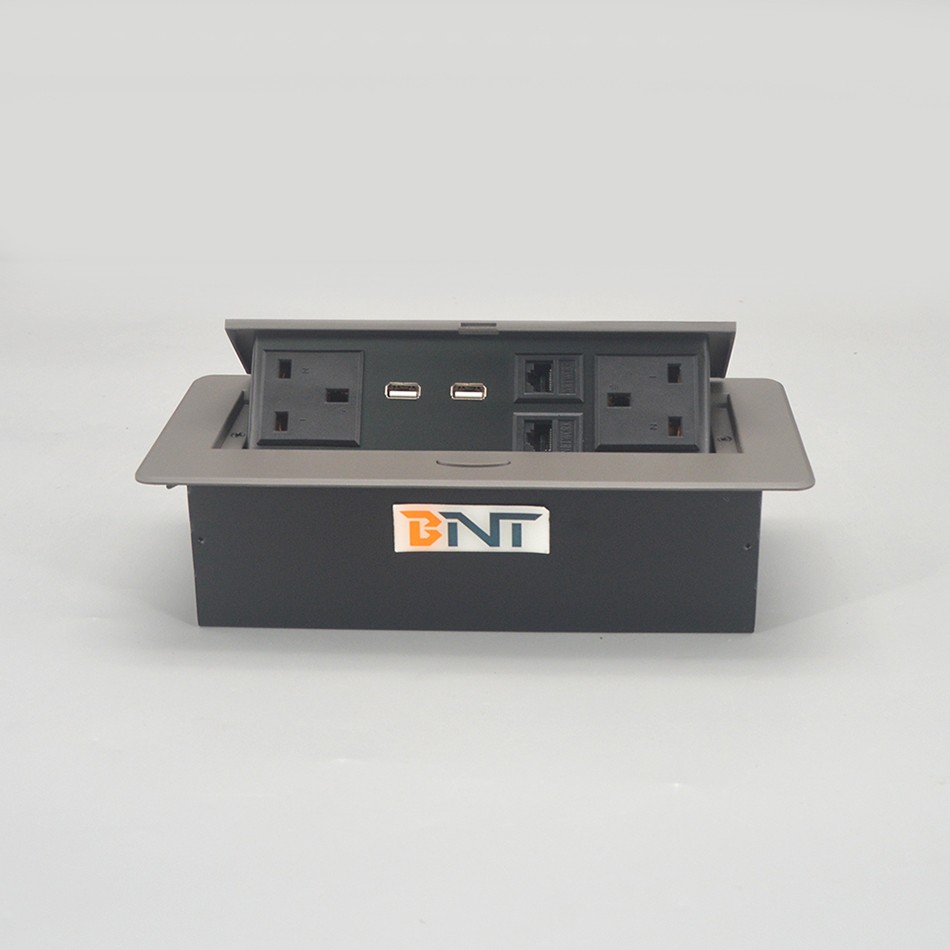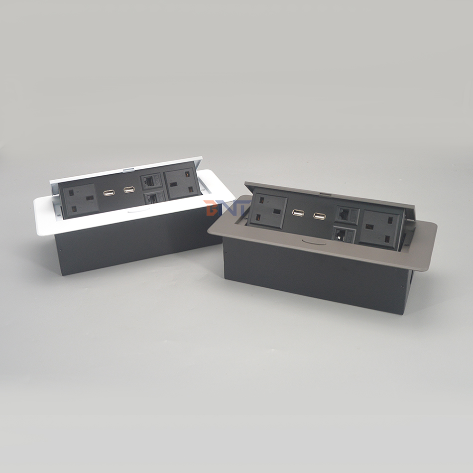 这个插座通常安装在工作台和所有连接器上并隐藏在表面锌合金面板下面。 可以节省更多空间并保持表格整合和符合要求。 为办公室和会议室提供时尚和现代化的环境。