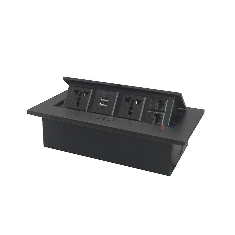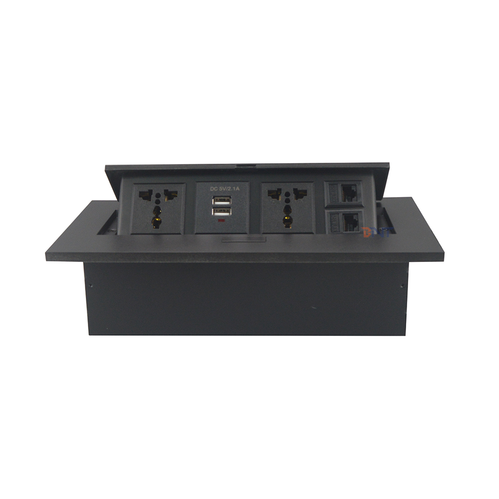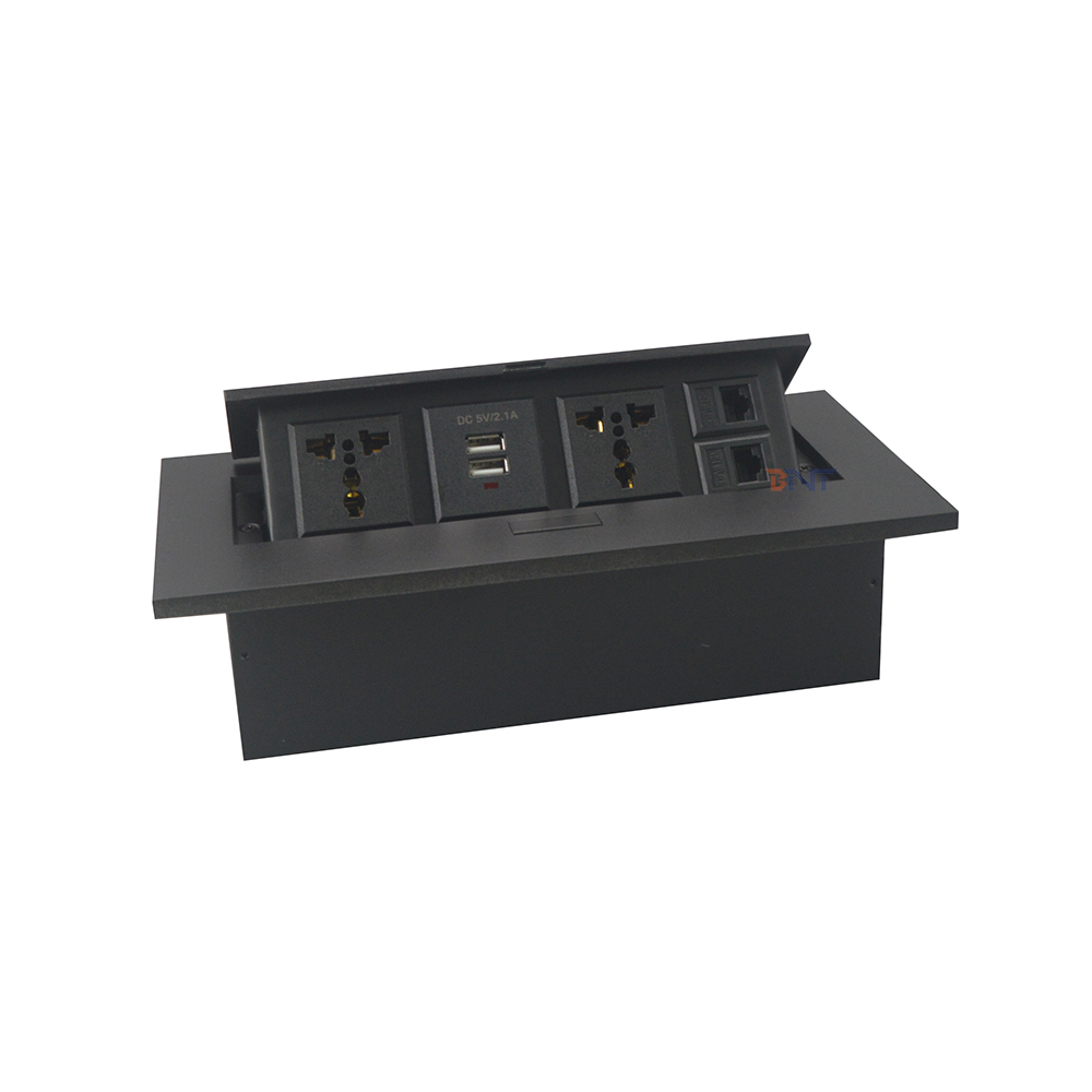 这个插座通常安装在工作台和所有连接器上并隐藏在表面锌合金面板下面。 可以节省更多空间并保持表格整合和符合要求。 为办公室和会议室提供时尚和现代化的环境。