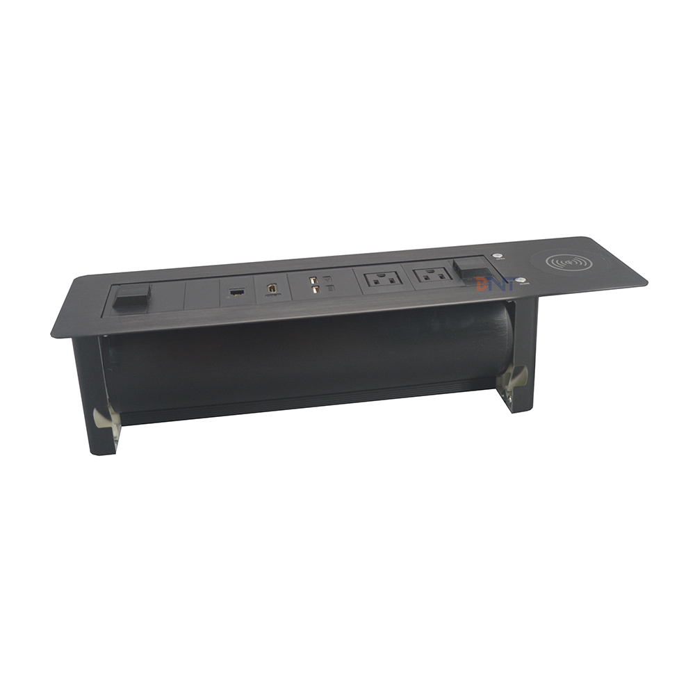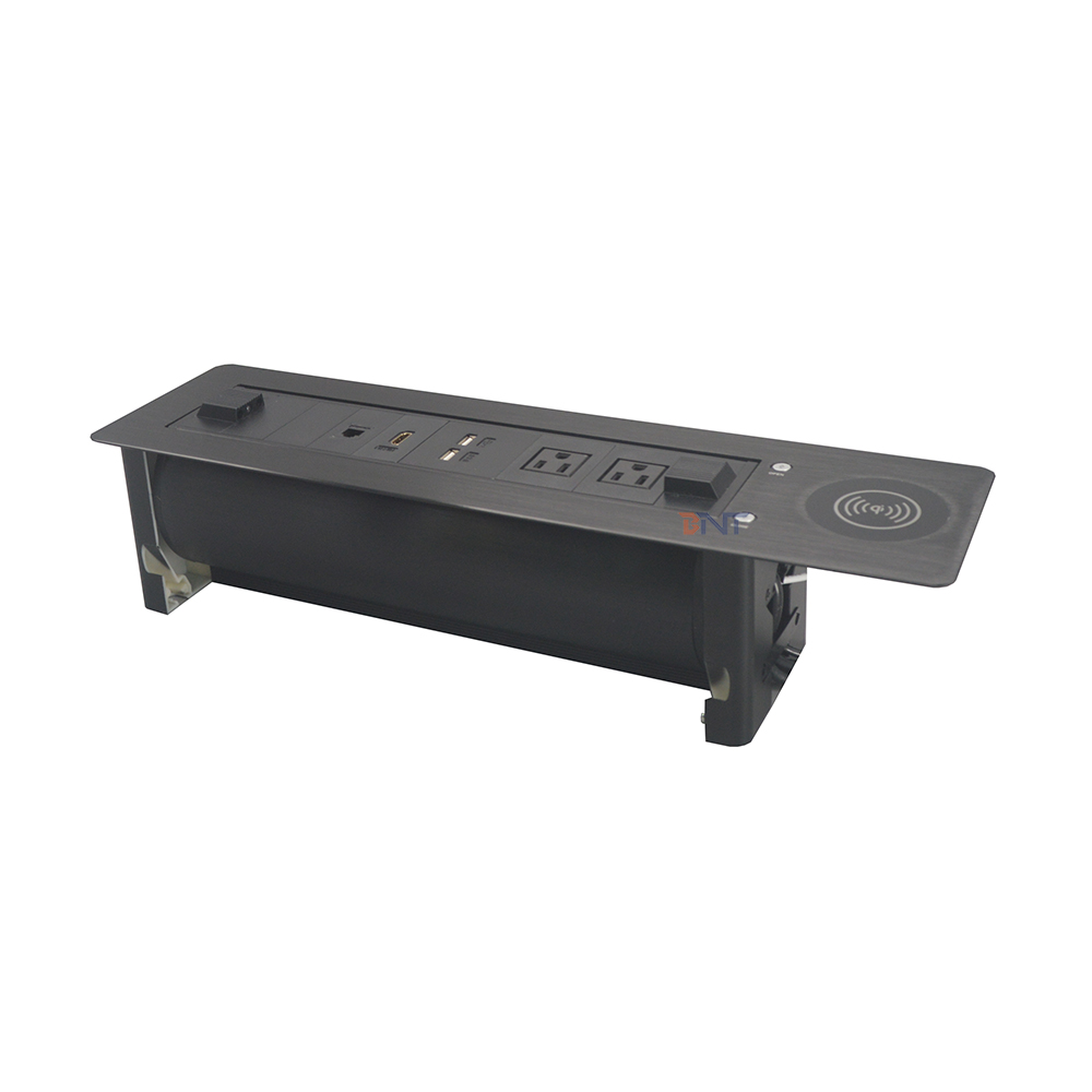 4,电动桌面插座包含一个电动马达,确保可靠的旋转和定位到适当位置的能力。
