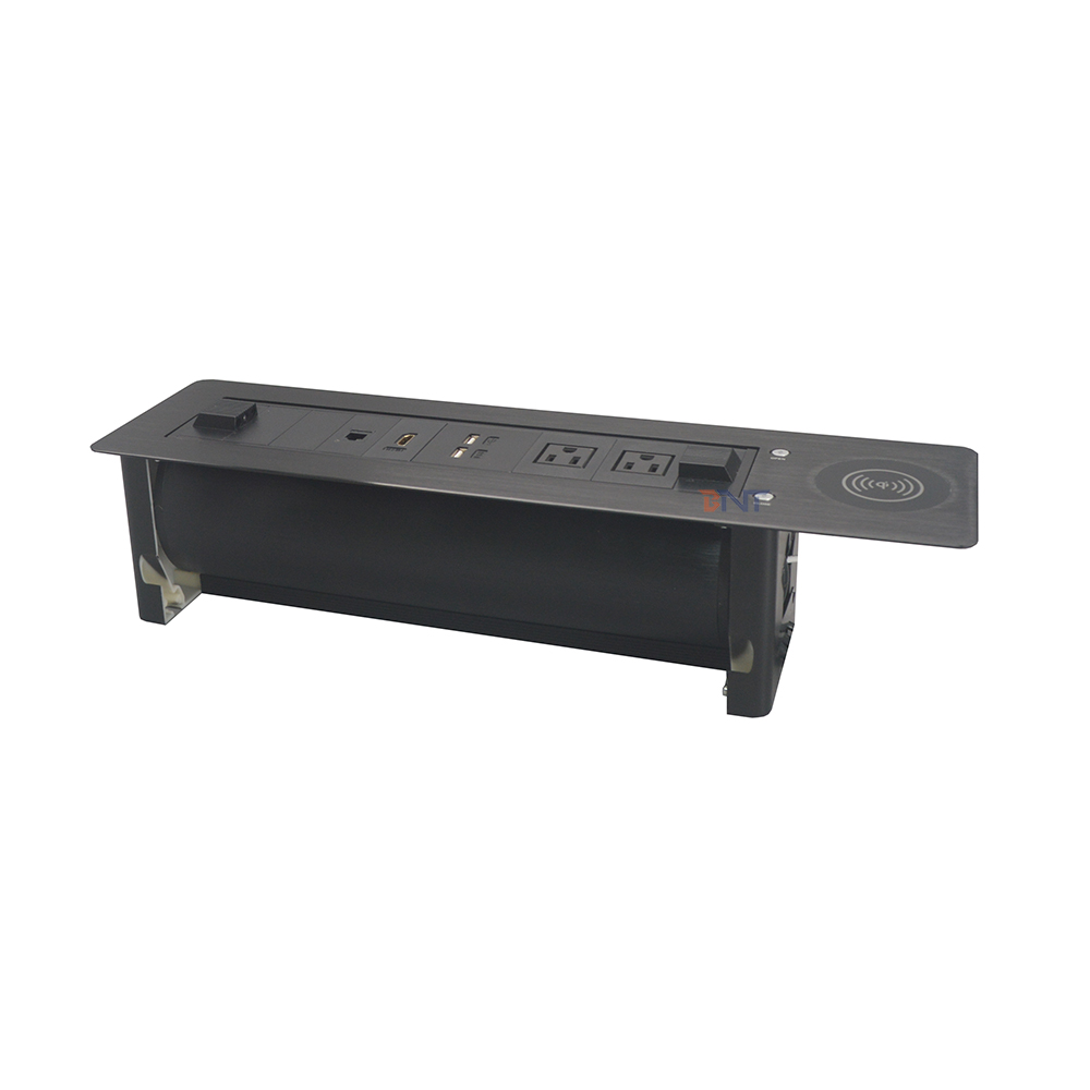 BC-0405桌面插座设计为具有多功能配置的现代滑盖插座,它是一种隐藏的设备,因为它安装在桌面上使用并在不使用时隐藏在桌子中。有USB充电器连接器,可通过USB线为移动设备或其他设备充电。