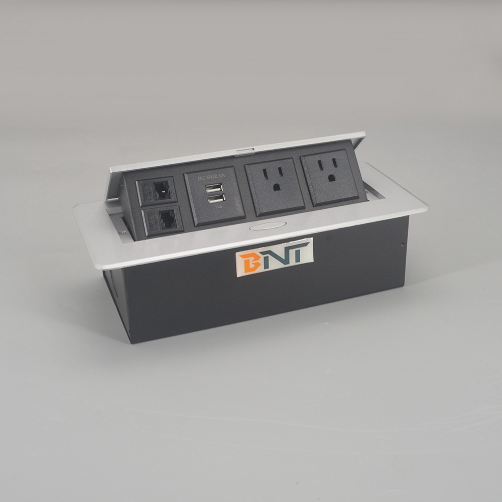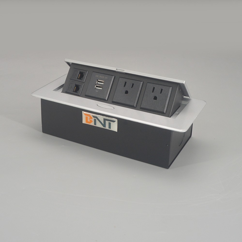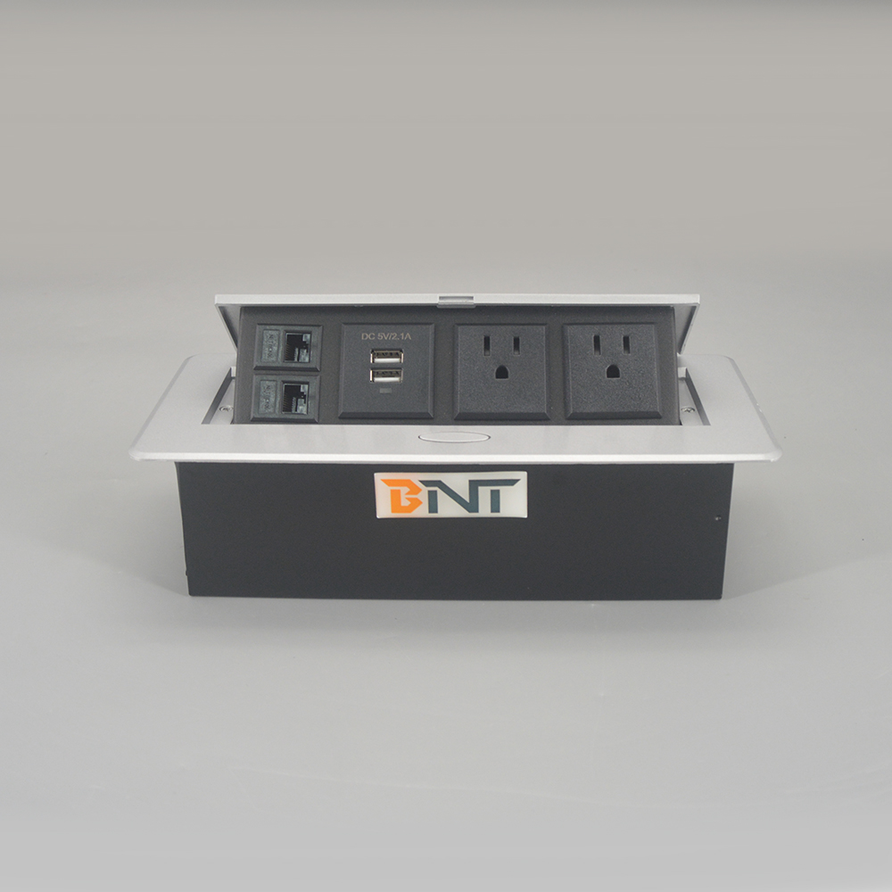 这个插座通常安装在工作台和所有连接器上并隐藏在表面锌合金面板下面。 可以节省更多空间并保持表格整合和符合要求。 为办公室和会议室提供时尚和现代化的环境。